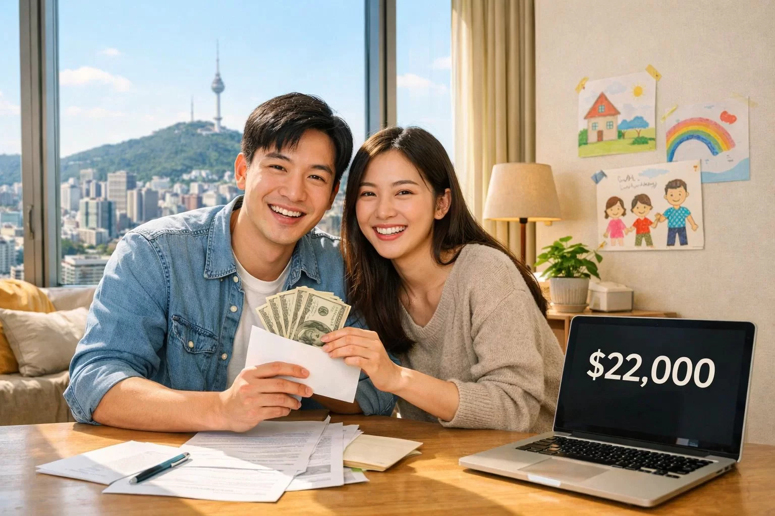 Схема работает примерно так. Государство платит семье до 22 тысяч долларов на ребёнка — причём не единовременно, а растянуто на восемь лет поддержки. Это само по себе серьёзная сумма, но к ней добавляются корпоративные программы: крупные компании, включая Samsung и Hyundai, начали выплачивать собственные премии при рождении детей — от 40 до 70 тысяч долларов. Параллельно работают субсидии на жильё и оплата процедур ЭКО.
