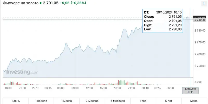Основная причина роста — спрос на золото как на актив-убежище на фоне приближающихся выборов в США и ожидание снижения процентных ставок ФРС. Инвесторы опасаются, что эти события могут привести к ослаблению доллара и поднять золото в цене. Однако после выборов в Америке с большой долей вероятности мы будем наблюдать снижение котировок.